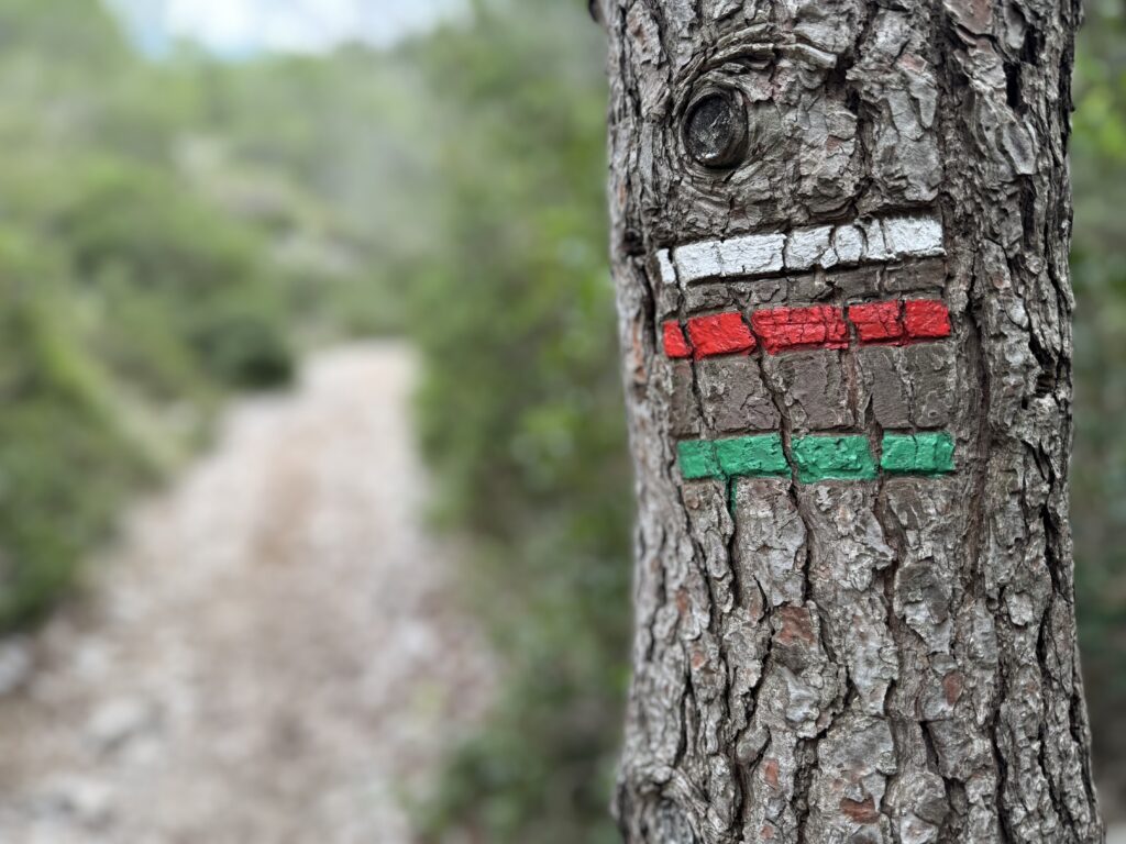 Sur notre gauche, apparaît bientôt la Crête de l’Estret, qui culmine à 440 mètres. À son sommet, balayé par les vents, la végétation est rare. À 5,2 km, ne pas prendre à gauche le sentier qui mène au Col de la Fenêtre, mais poursuivre sur le sentier Garrigue. À 5,6 km, prendre sur la droite un sentier plus large en direction du sud-est.